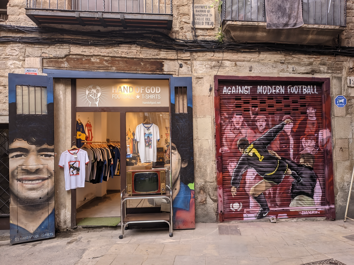 Hand of God es una marca de moda ética y sostenible con temática de fútbol, diseñada y estampada de forma artesanal en Barcelona. Estamos a favor del fútbol poesía. Nos gusta el fútbol rebelde, el fútbol inclusivo, el fútbol del pueblo. El que se juega en las calles. El fútbol del taco, el caño, la rabona y la Mano de Dios...